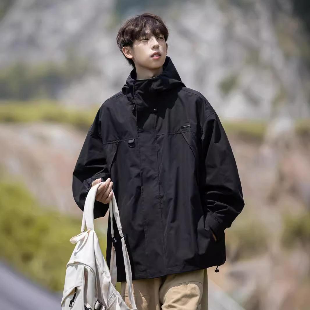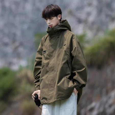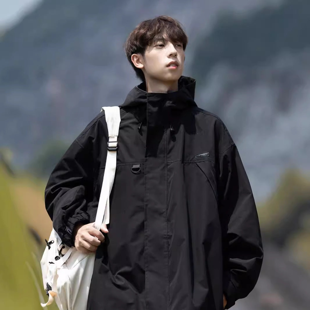 Gear up for the outdoors with our Men’s Outdoor Hooded Windbreaker Jacket, designed for spring and autumn weather. Combining Japanese-inspired fashion with functional workwear details, this jacket offers the perfect mix of style, comfort, and performance for daily wear or outdoor activities.