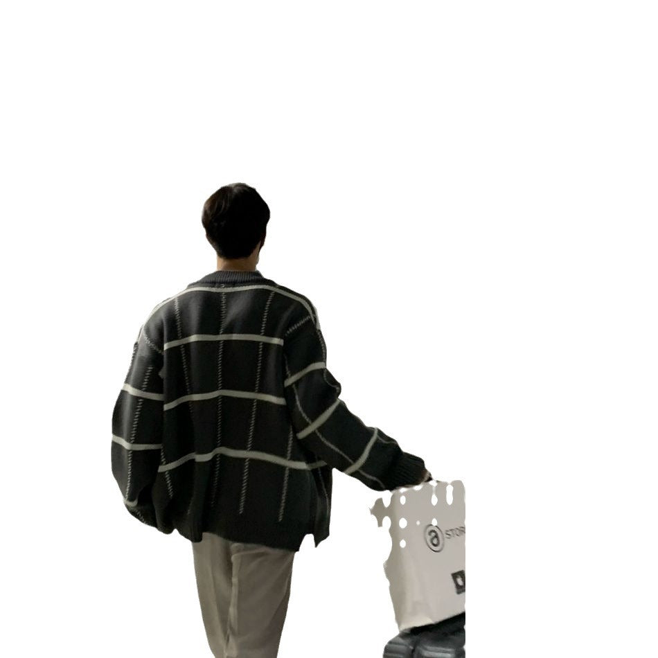 Elevate your autumn and winter look with this oversize V-neck American-Japanese style cardigan sweater—a comfortable, stylish, and trend-forward piece for modern men! 🌟