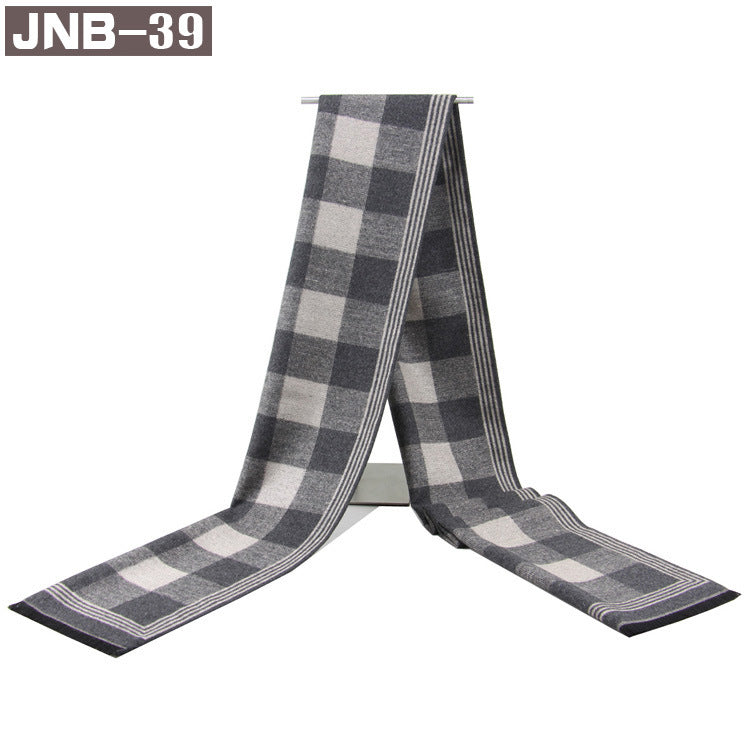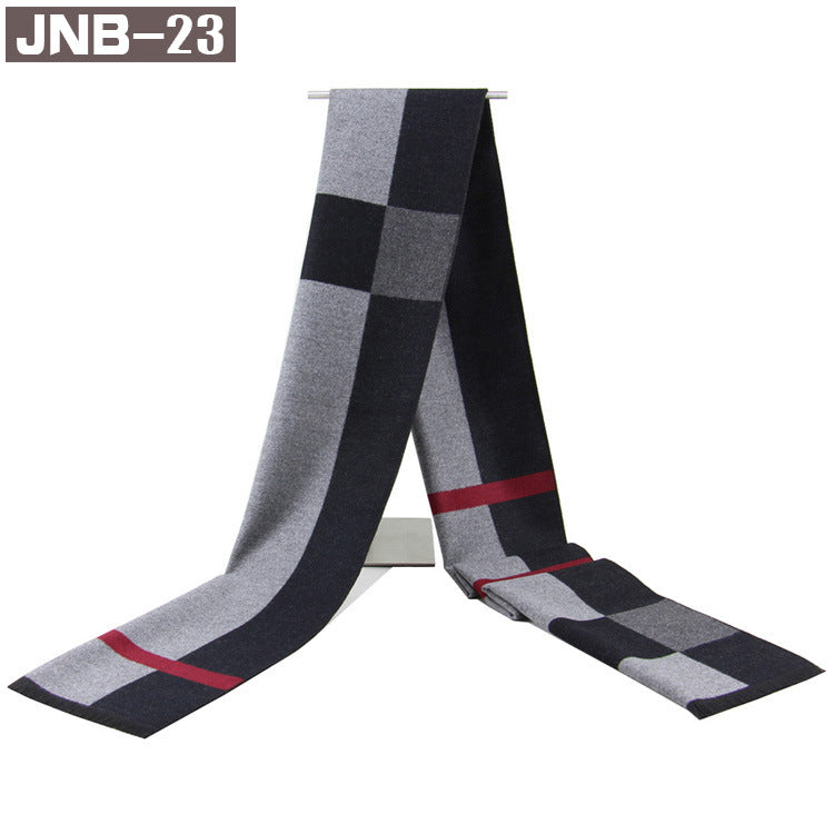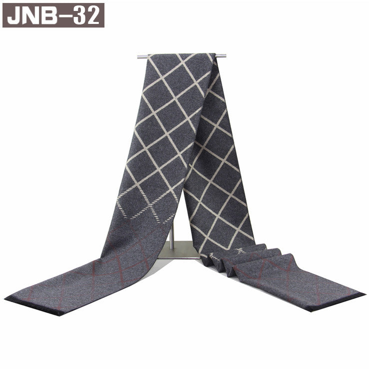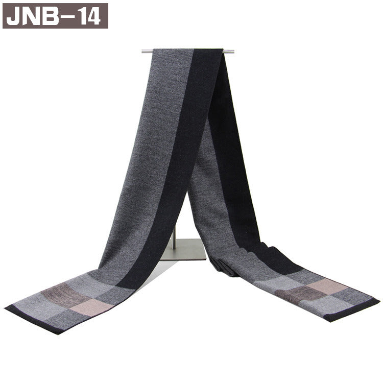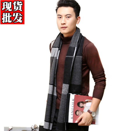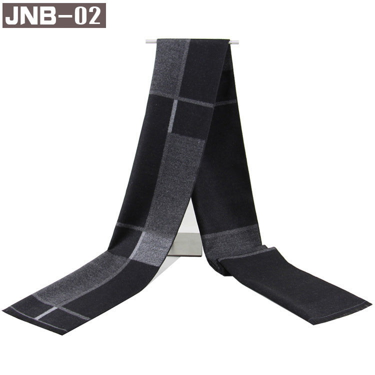 Men’s Plaid Scarf Winter Black Gray Imitation Cashmere Business