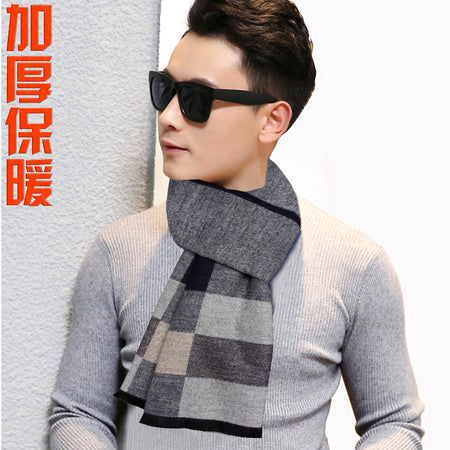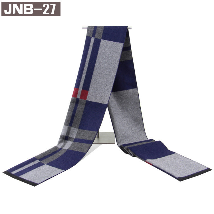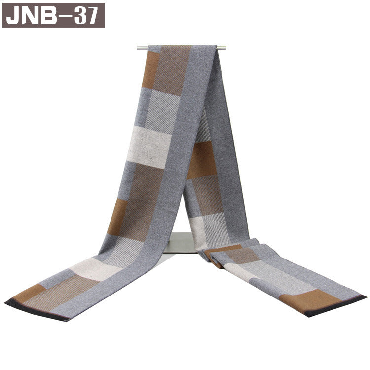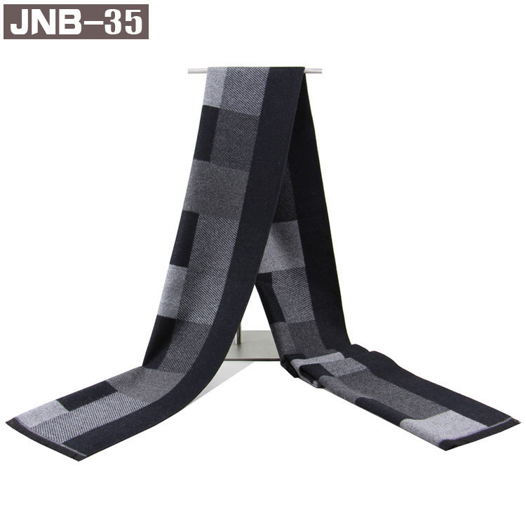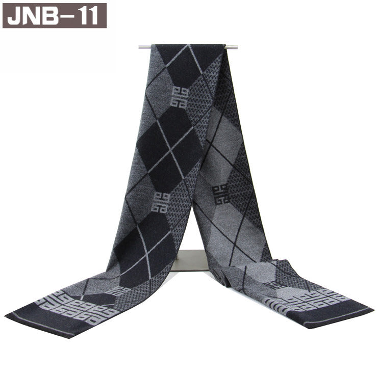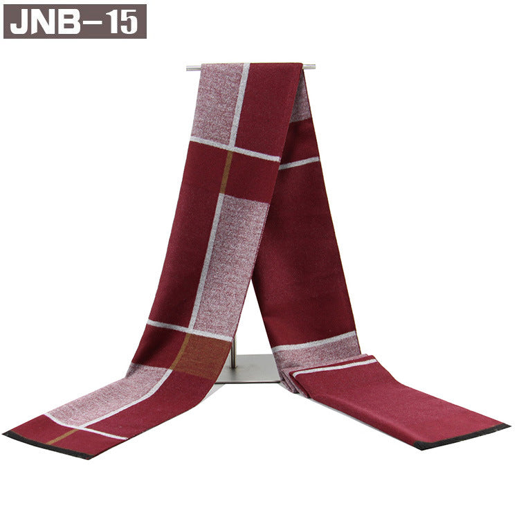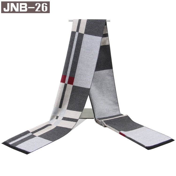 Men’s Plaid Scarf Winter Black Gray Imitation Cashmere Business
