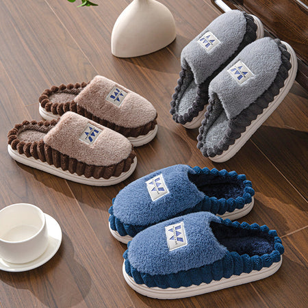 Men’s Plus Size Winter Warm Cotton Slippers – Indoor Non-Slip