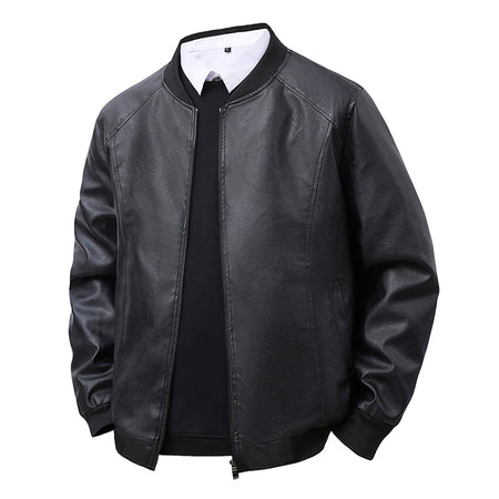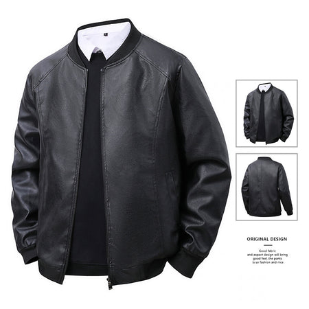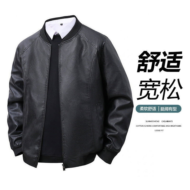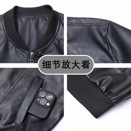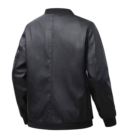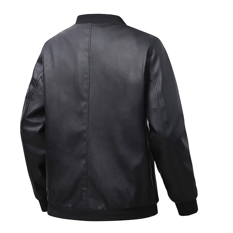 Men’s PU Leather Jacket – Retro Baseball Collar Slim Fit