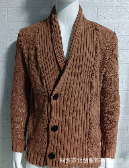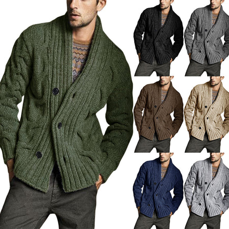 Men’s Pure Color Long-Sleeve Knitted Cardigan Sweater