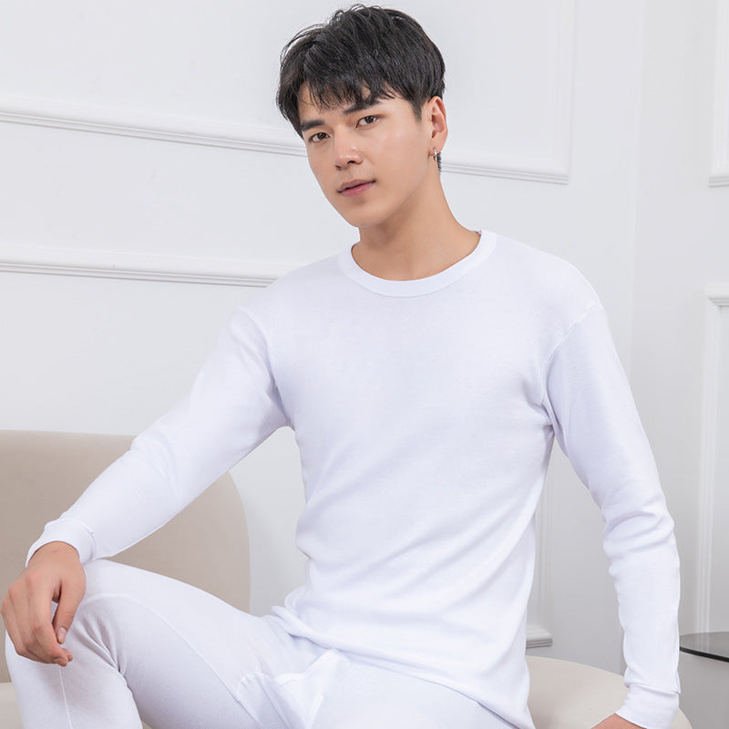 The classic round neck design offers a simple yet stylish look, while the soft cotton fabric ensures excellent moisture absorption and skin-friendly comfort, making it ideal for sensitive skin. The long trousers feature a snug fit that provides warmth without bulk, allowing easy movement throughout your day.