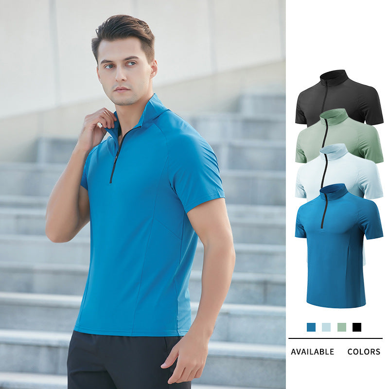 Men’s Quick-Dry Stand Collar Half-Zip Sports T-Shirt