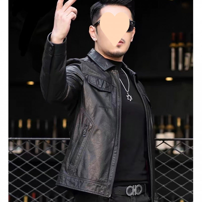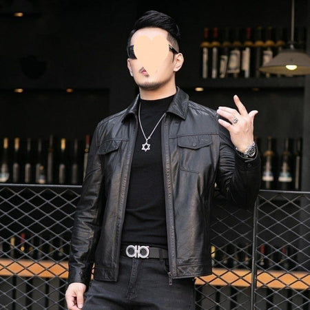 Men’s Slim Biker Leather Jacket – Korean Trendy Style