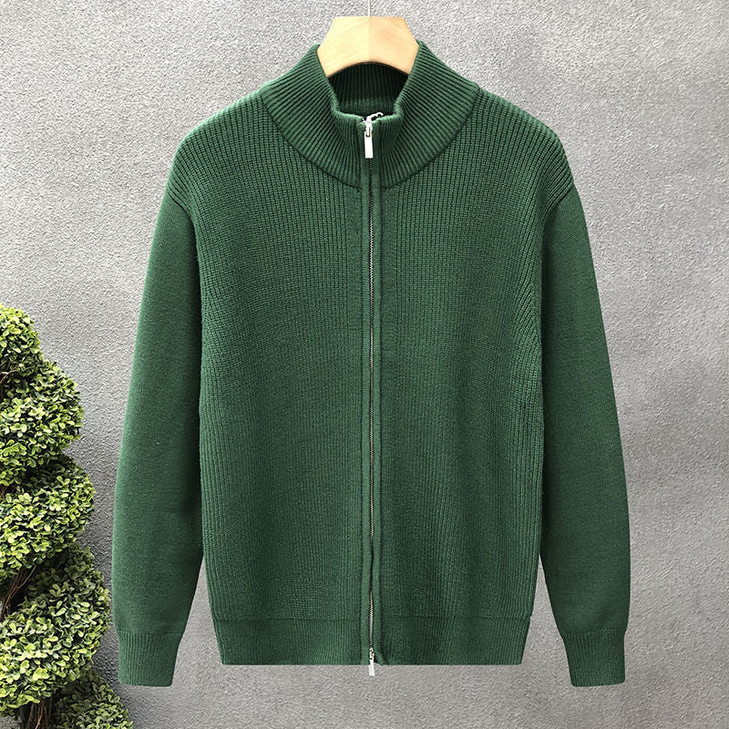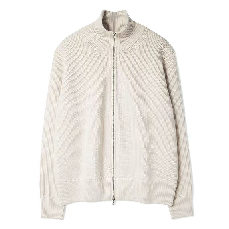 Crafted from premium knitted fabric, this slim-fit cardigan ensures comfort while maintaining a polished, high-end look. The stand collar design offers warmth and a modern touch, while the minimalist style makes it easy to pair with shirts, T-shirts, or trousers for a complete trendy outfit.
