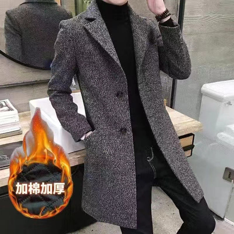 Step out in style with this Men’s Slim-Fit Wool Trench Coat, designed for youth and young professionals who want modern Korean-style fashion with practical warmth. Crafted with a cotton-thickened wool blend, this mid-length coat keeps you cozy without compromising on sleek style.