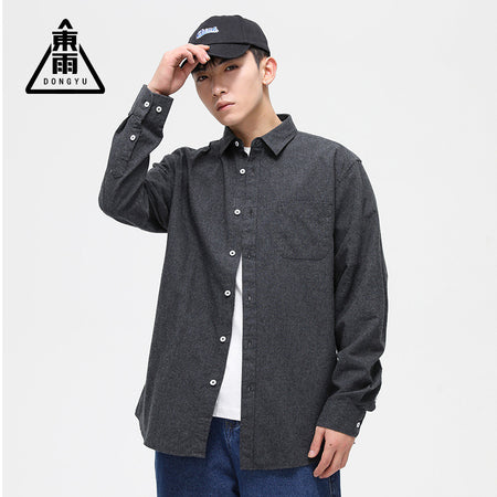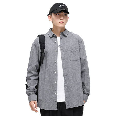 Men’s Solid Color Cotton Shirt – Autumn Winter Long Sleeve