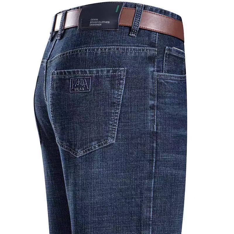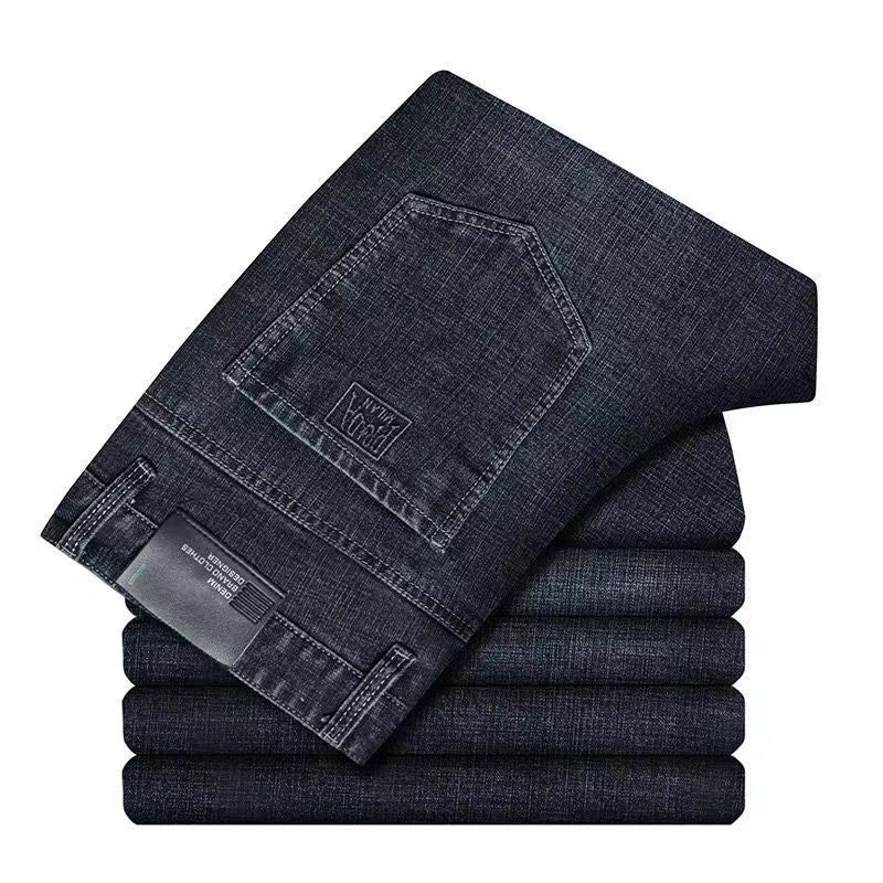 Men’s Stretch High Waist Jeans – Thin Loose Casual Pants