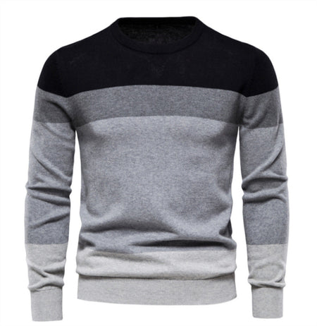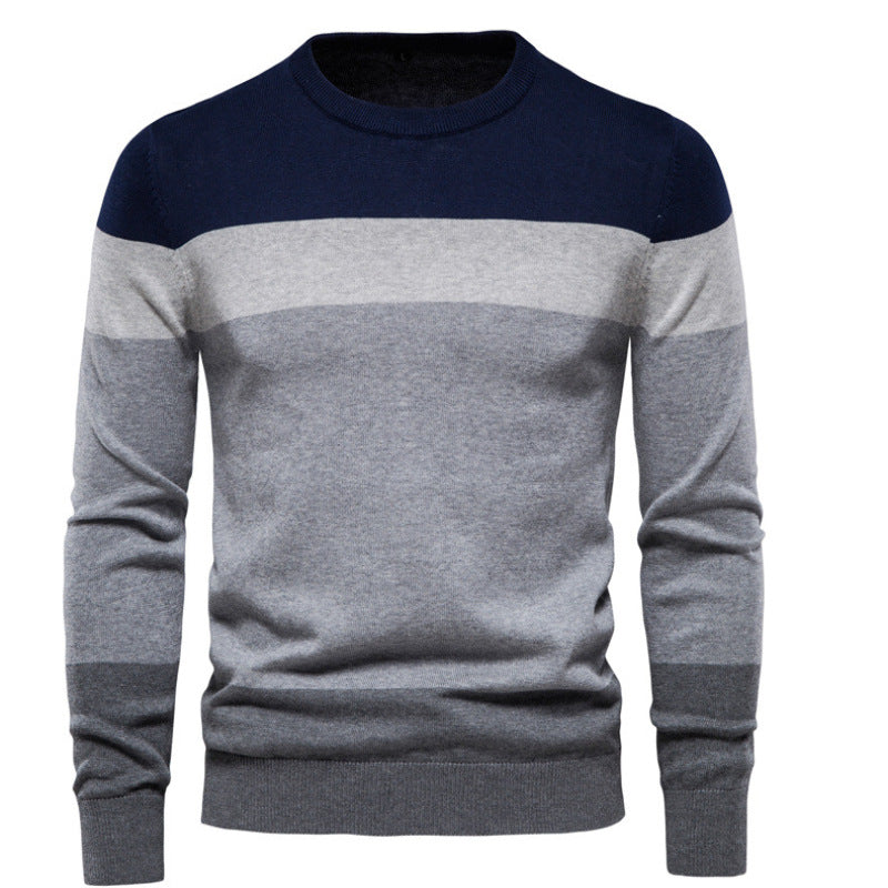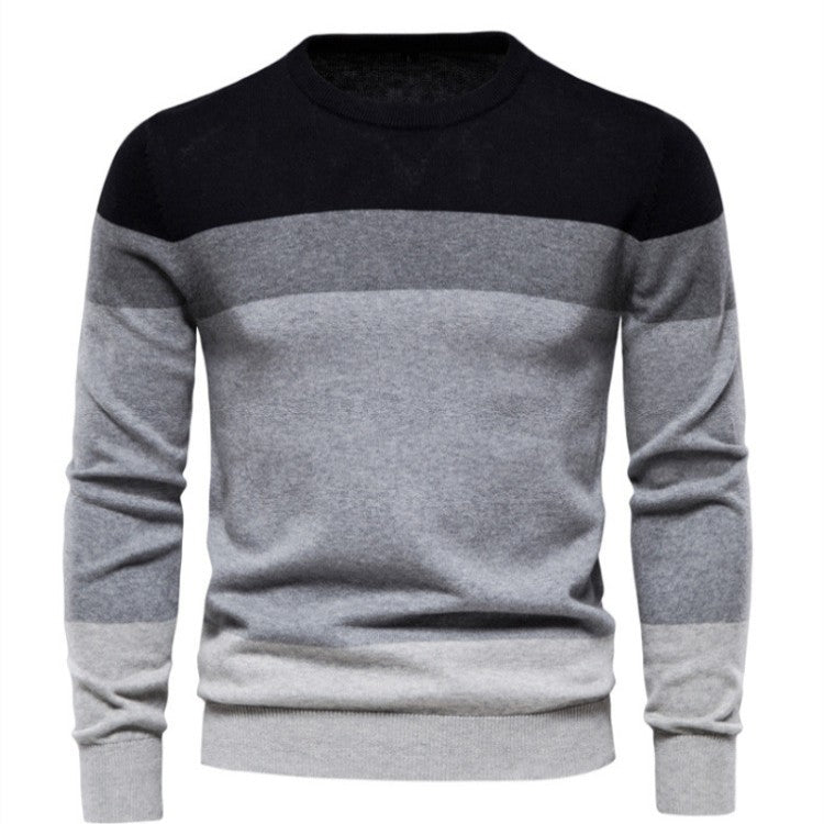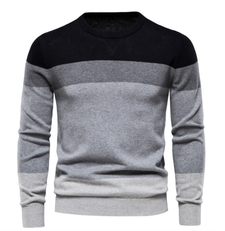 Men’s Striped Pullover Sweater – Spring/Autumn Crewneck
