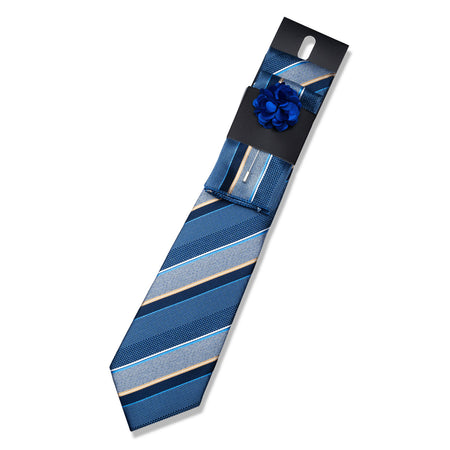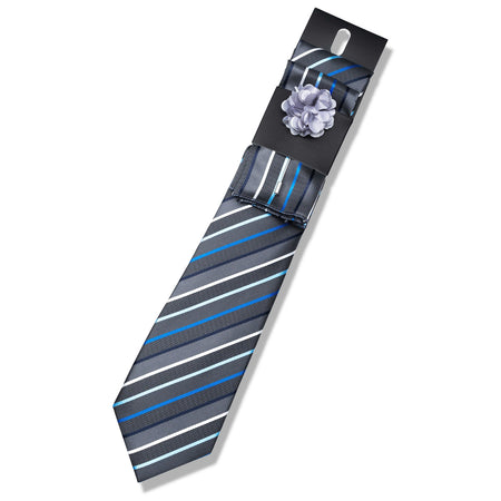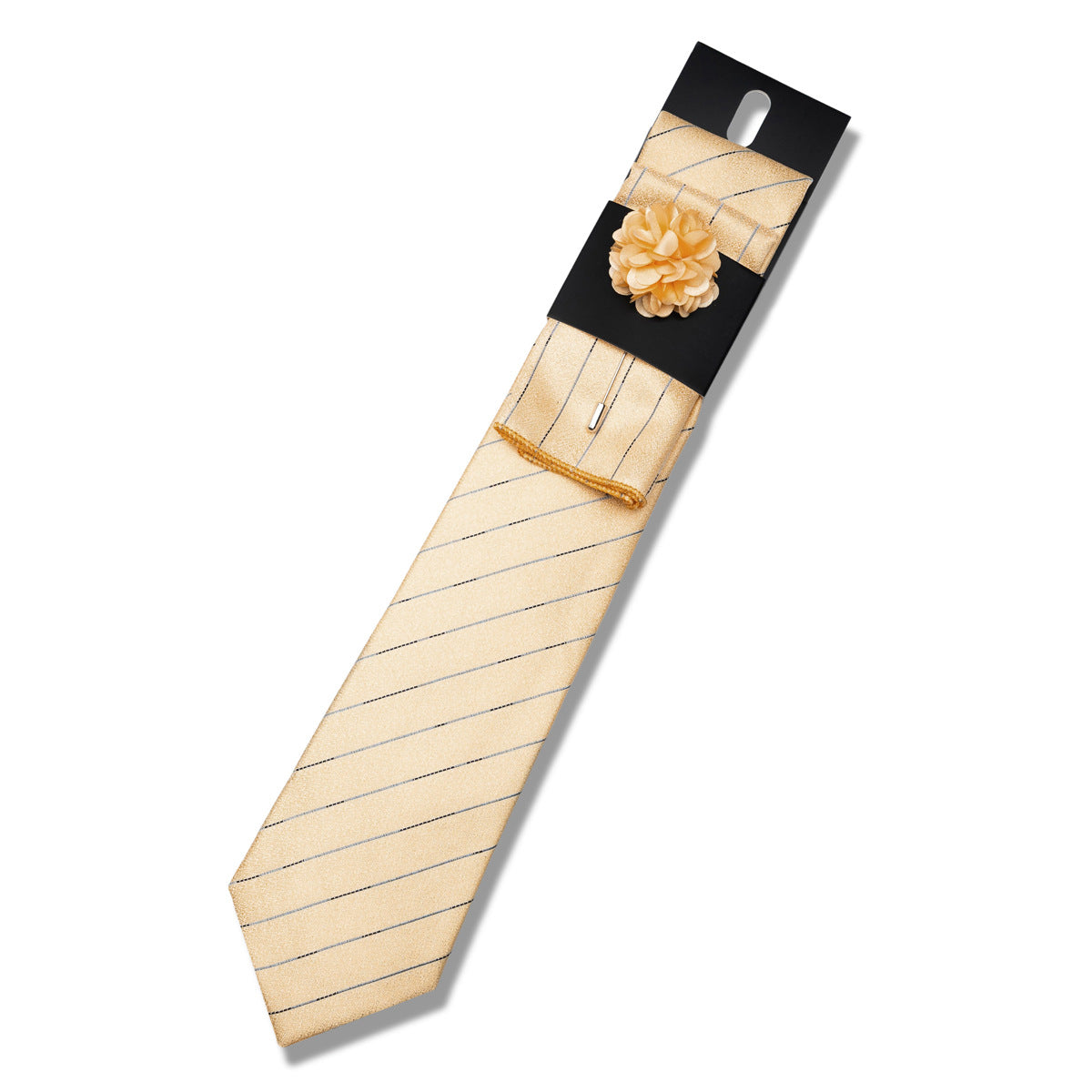 Each set includes a premium striped tie, often paired with a matching pocket square or cufflinks, perfect for creating a sharp and polished look. Made from smooth, durable polyester, the tie holds its shape and gives that sleek, modern finish every gentleman needs.