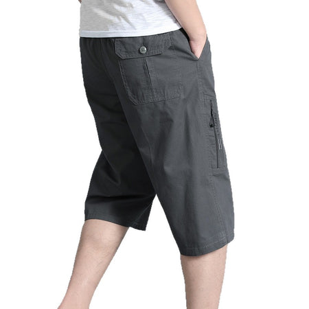 Men’s Summer Cotton Cropped Shorts | Loose 7-Point Mid-Length Casual Pants for Middle-Aged and Elderly Comfort Wear