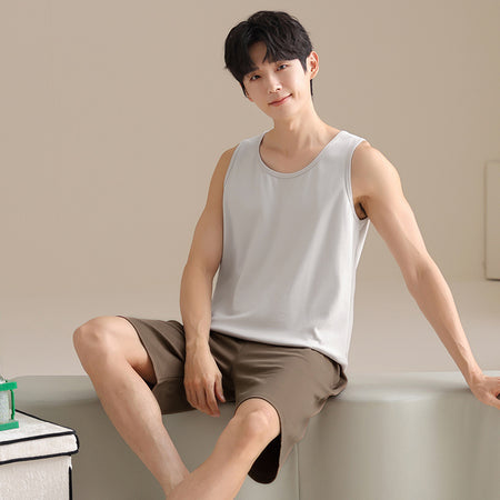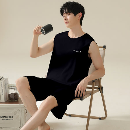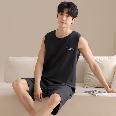 Men’s Summer Cotton Pajama Set – Sleeveless & Breathable