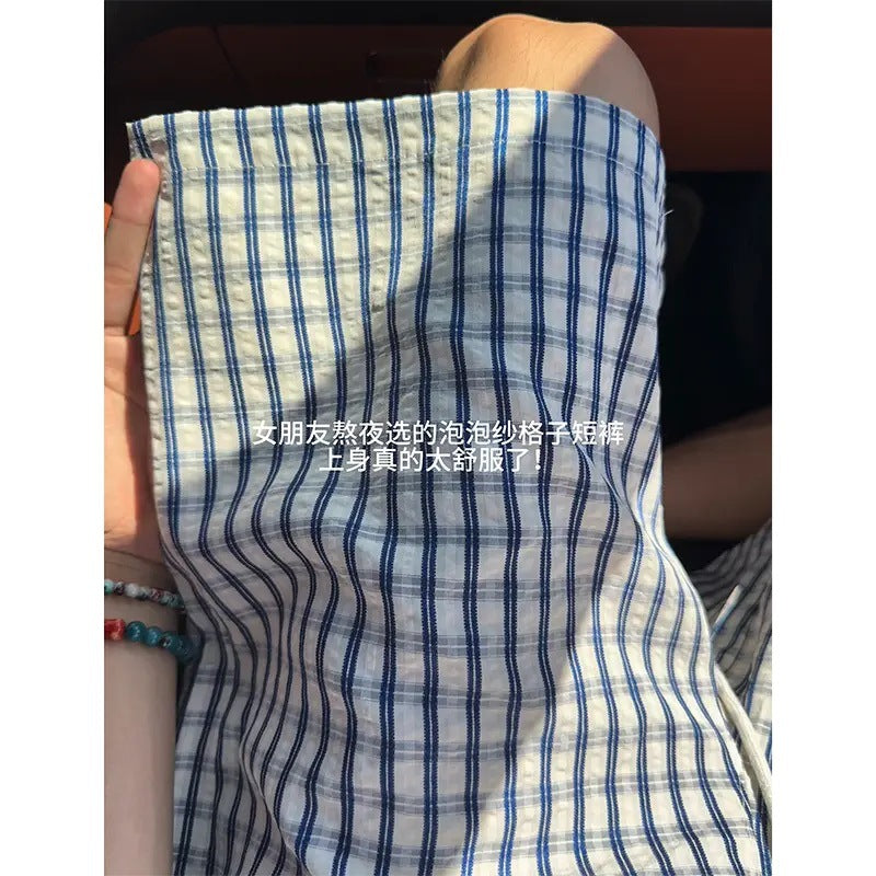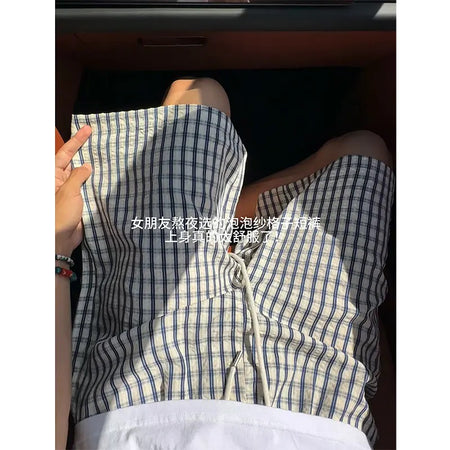 Men’s Summer Seersucker Plaid Shorts | Lightweight Spliced Wide-Leg Casual Straight Pants with Breathable Comfort