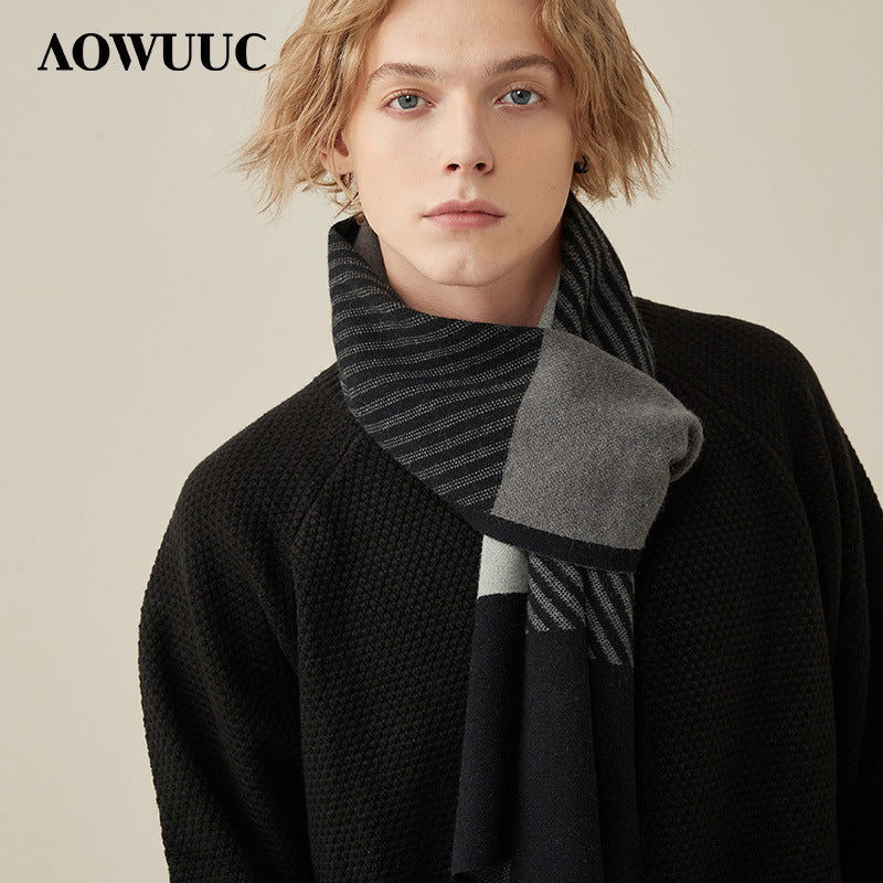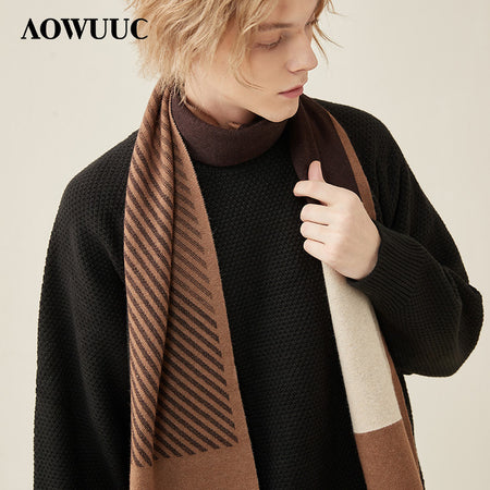 Men’s Thick Wool Scarf Autumn & Winter Plaid Striped Gift