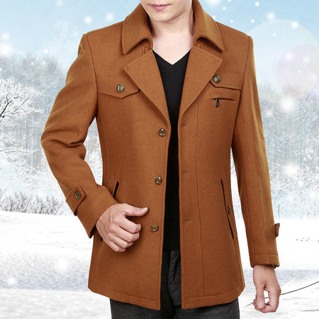 Men’s Thickened Woolen Mid-Length Trenchcoat