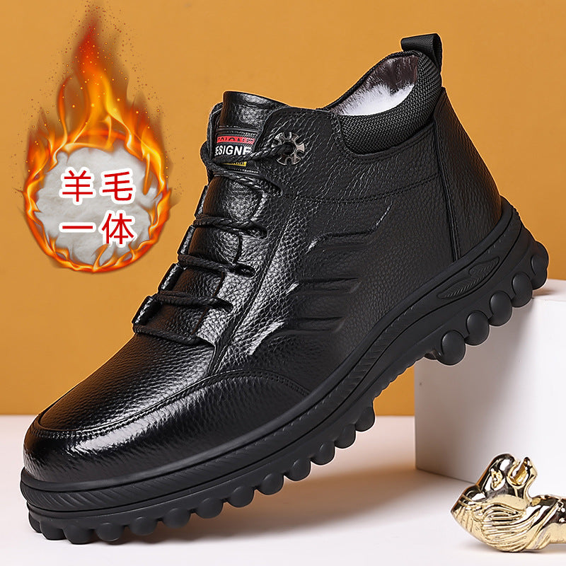 Men’s Top-Layer Cowhide Fleece-Lined Winter Boots