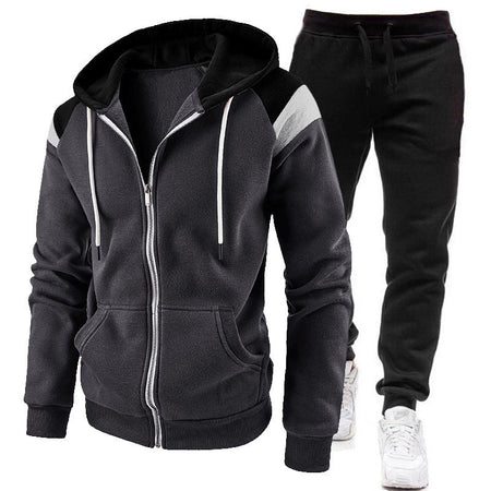Men’s Velvet Color-Blocked Zipper Hoodie Sweatpants Suit