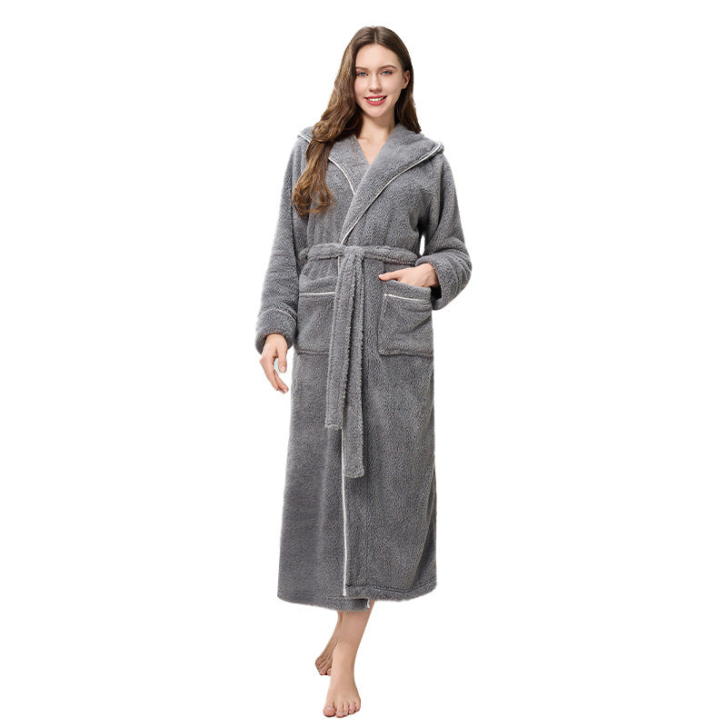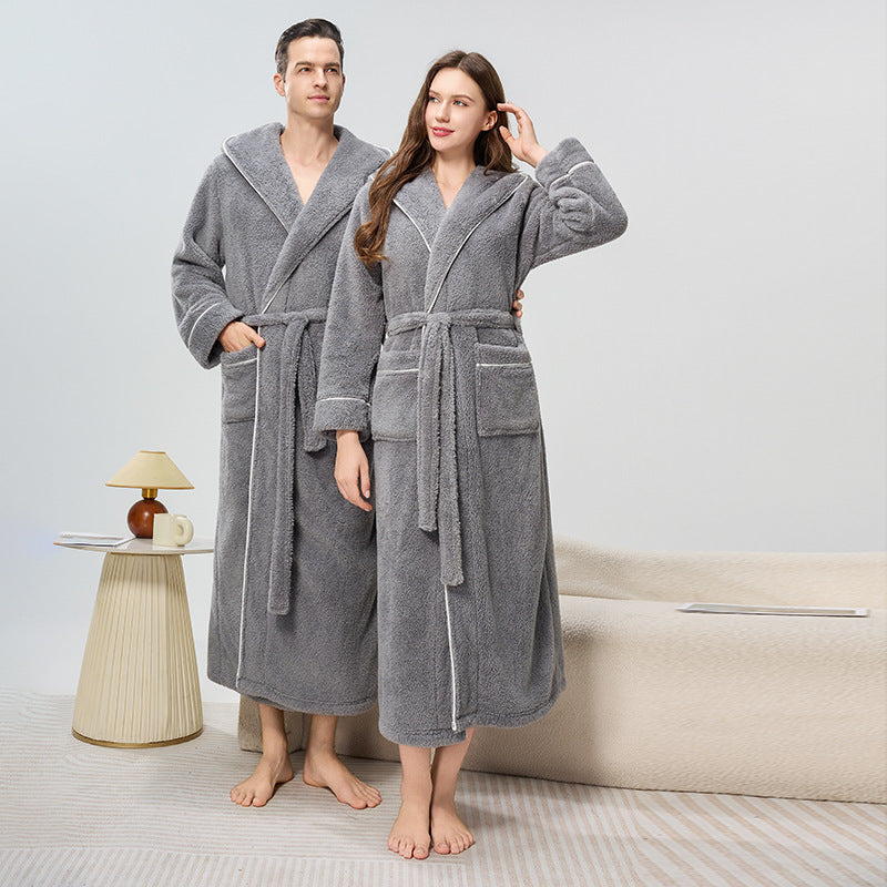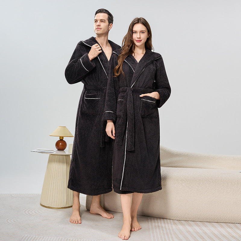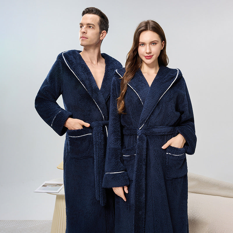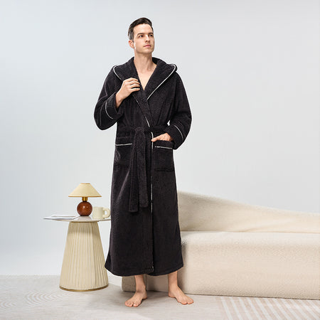 Men’s Velvet Hooded Bathrobe – Thick Warm Autumn Winter Robe