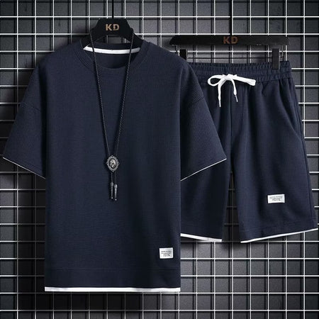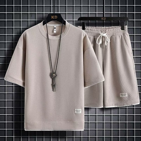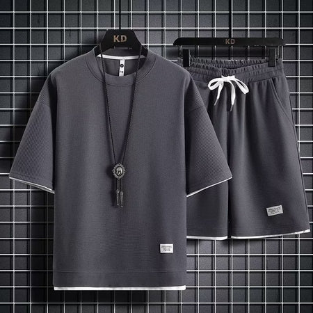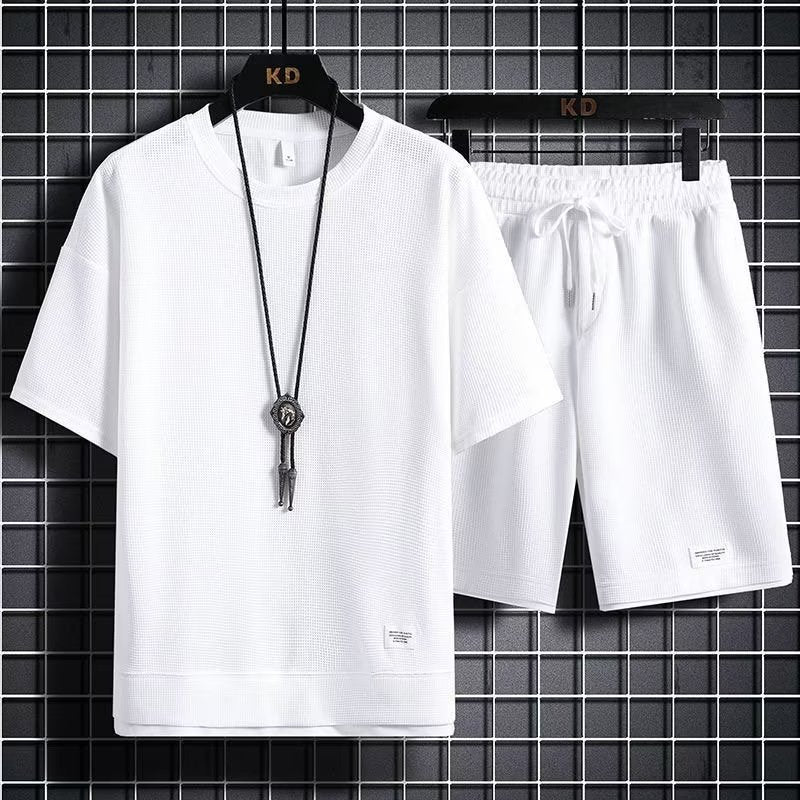 Men’s Waffle Sports Set – Loose Fit Two-Piece Outfit