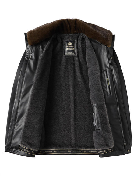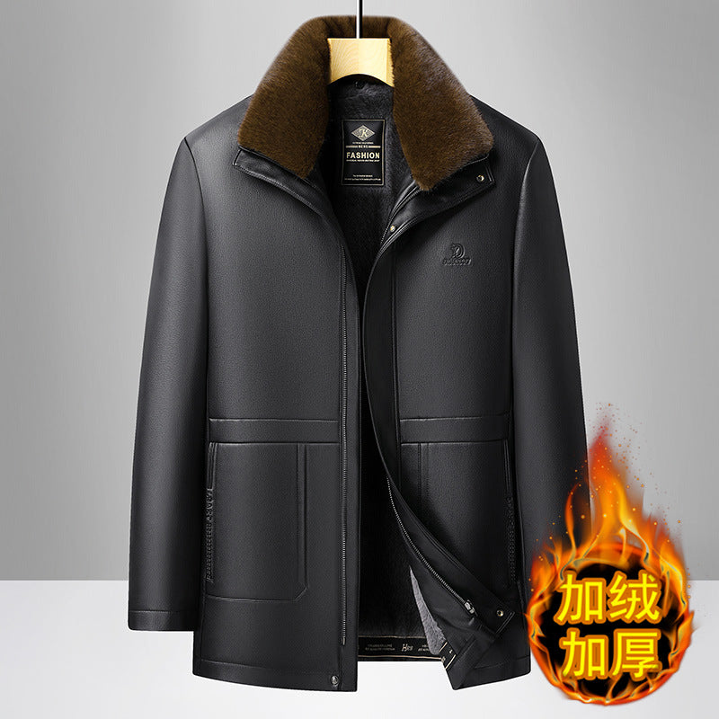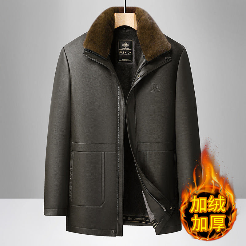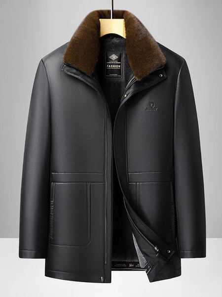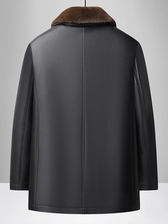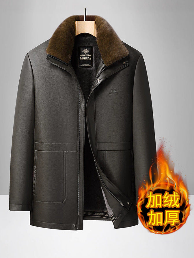 Men’s Warm Fleece-Lined Leather Jacket – Perfect for Dad