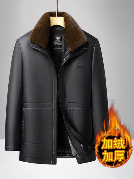 Invest in this fleece-lined leather jacket today and enjoy a winter filled with warmth, comfort, and timeless style for middle-aged and elderly men. 🛒