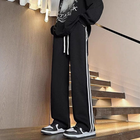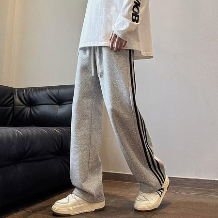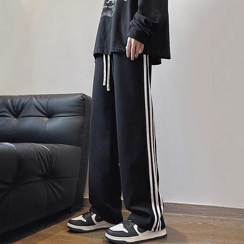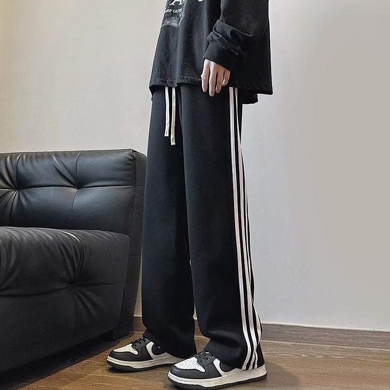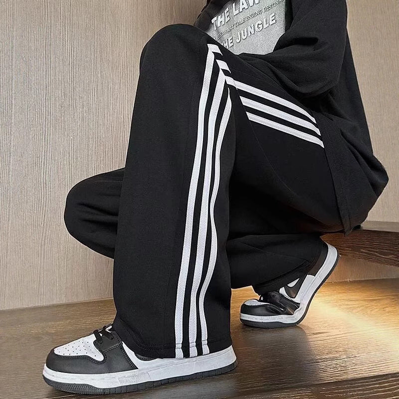 Step into effortless style and comfort with these men’s autumn and winter sweatpants. Featuring a simple three-bar design and a wide-leg cut, they perfectly combine fashion, versatility, and all-day wearability. Ideal for teenagers and men who love casual, relaxed streetwear.