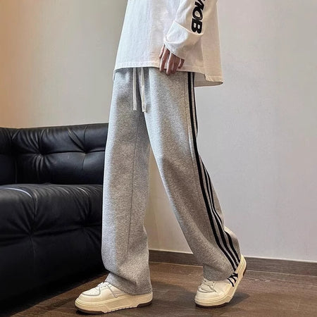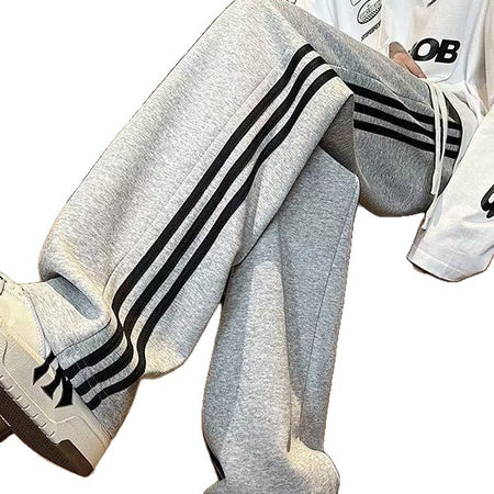 Men’s Wide-Leg Three-Bar Sweatpants Casual Comfort