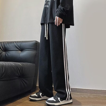 These casual sweatpants are perfect for both style and comfort. The loose wide-leg cut allows free movement, while the simple three-bar design adds a modern, sporty edge. Whether hanging out with friends, going to school, or enjoying weekend activities, these pants provide the ultimate blend of relaxed comfort and street-ready style.
