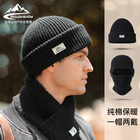 Men’s Winter Knitted Cotton Wool Hat – Warm Outdoor Beanie with Mask
