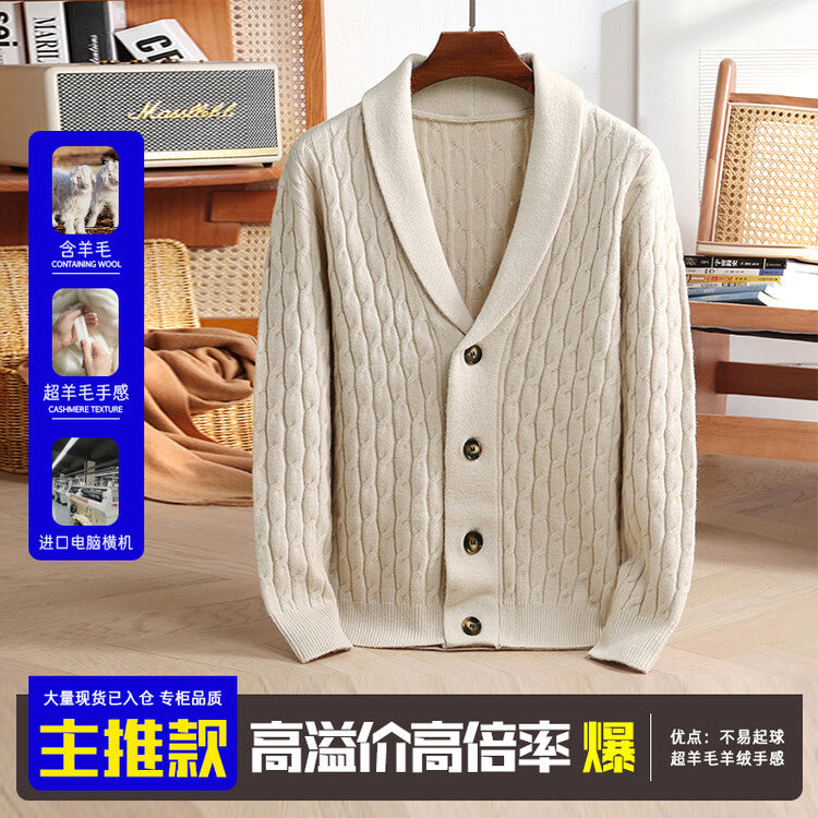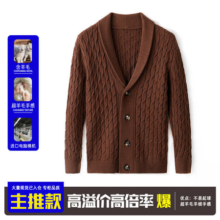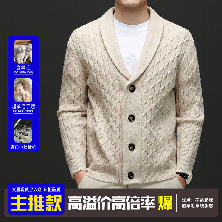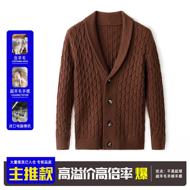 Men’s Wool Knit Cardigan Sweater Thick Autumn Winter Coat