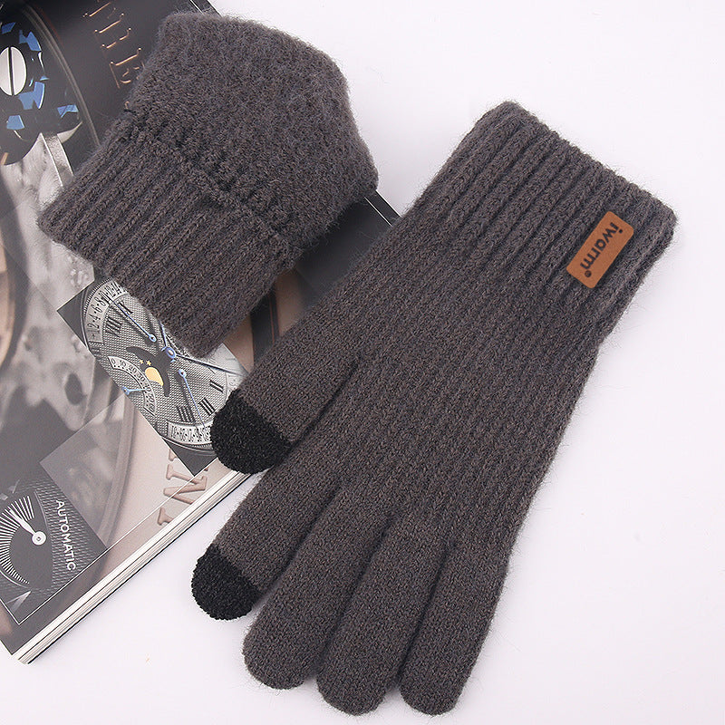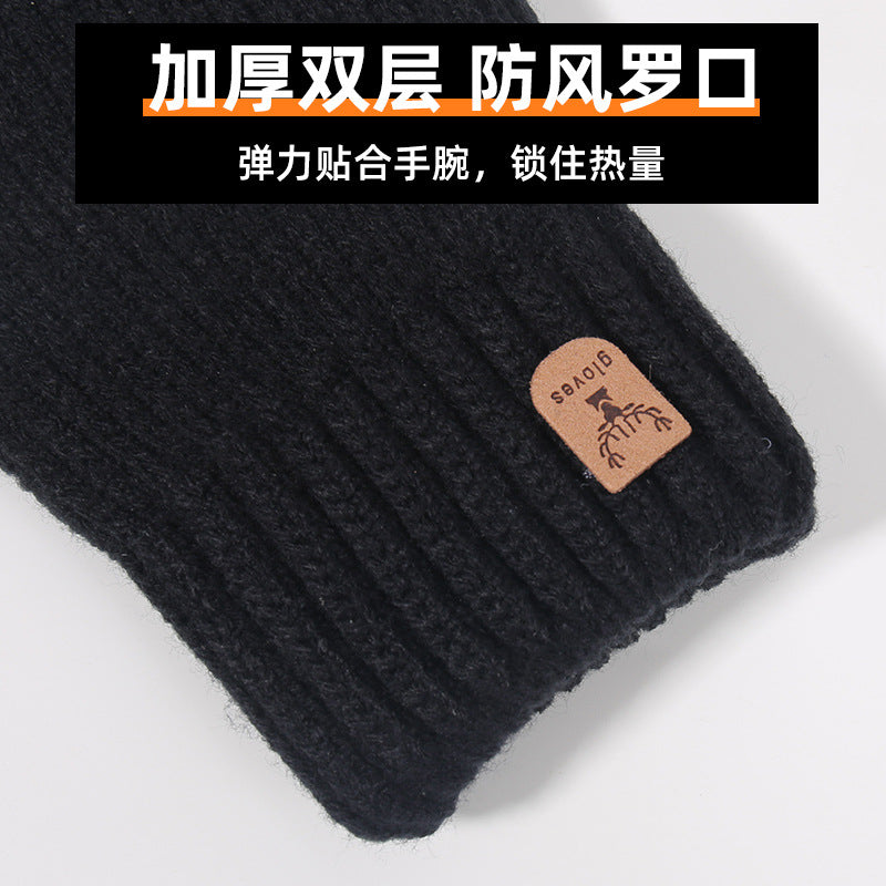 Men’s Wool Knitted Touchscreen Winter Gloves Plus Velvet
