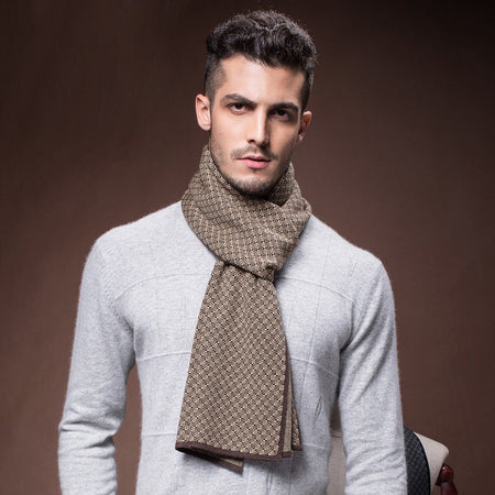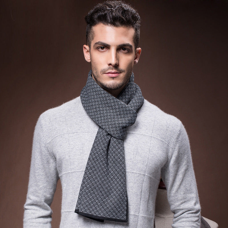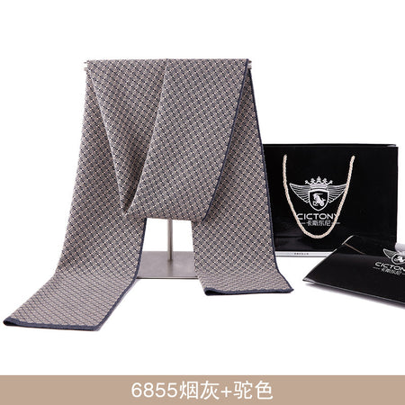 Men’s Wool Plaid Scarf Winter Knitted Warm Long Shawl