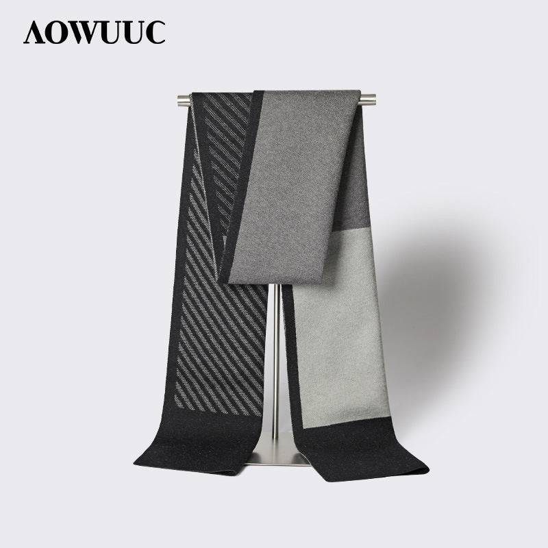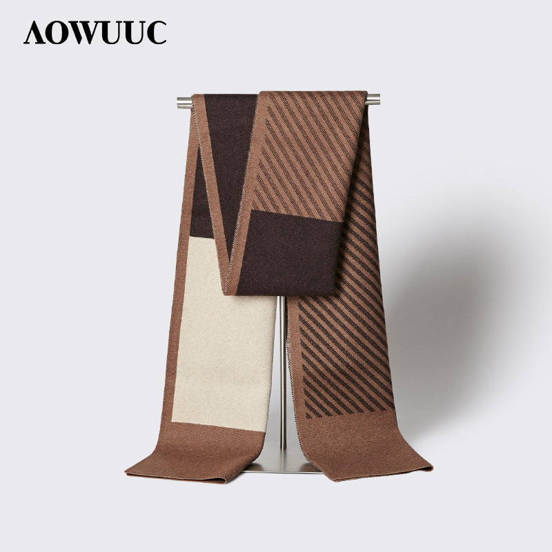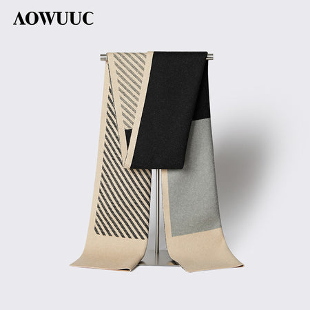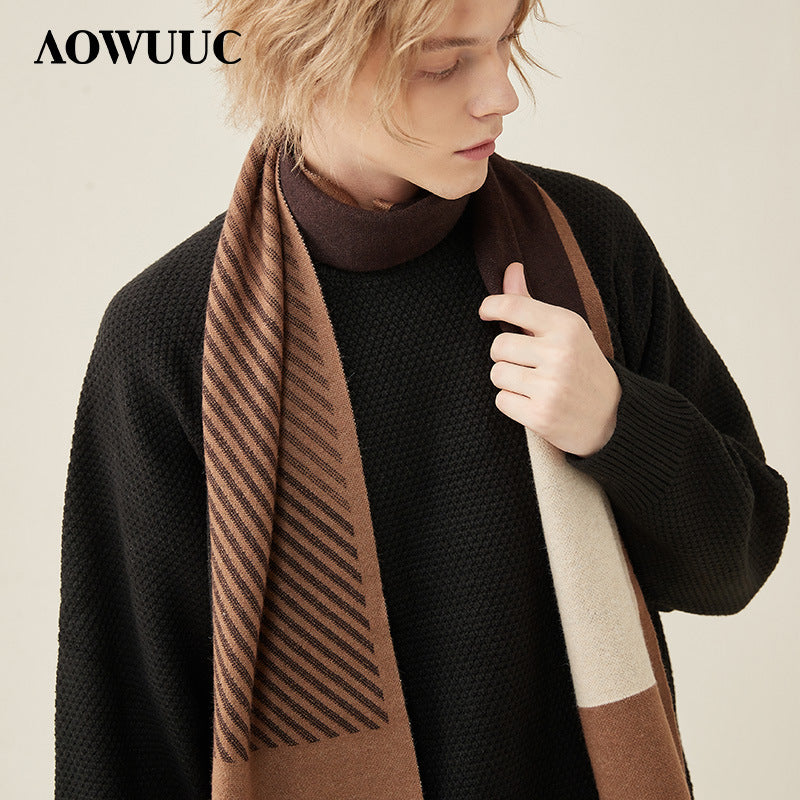 Men’s Wool Scarf Autumn Winter Thick Warm Plaid Striped Gift