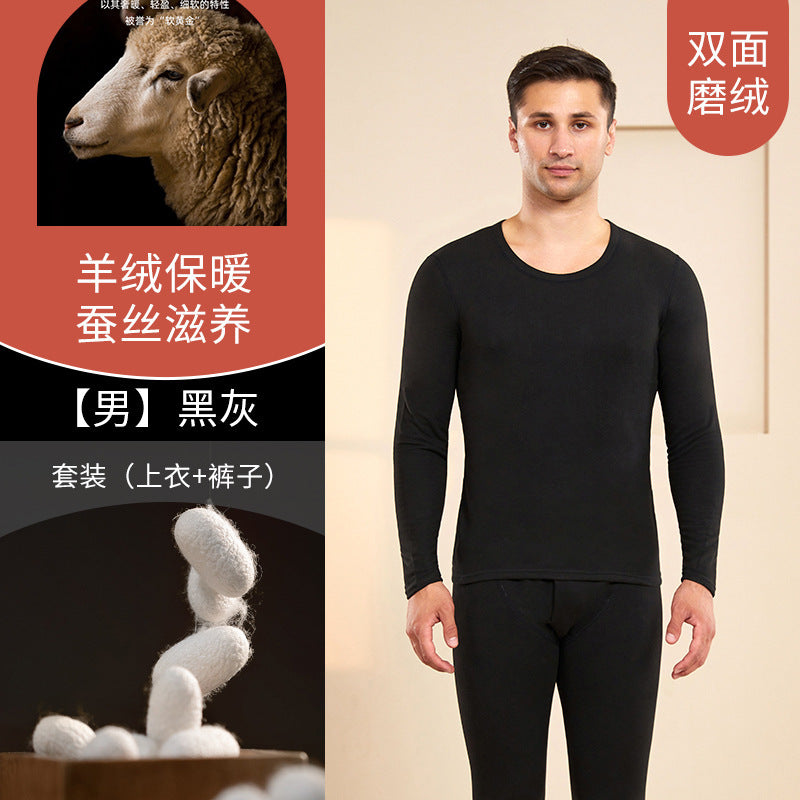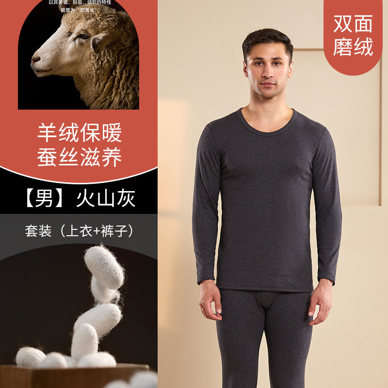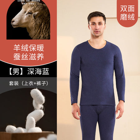 Men’s Wool & Silk Thermal Suit – Thick Fleece-Lined Winter Base Layer