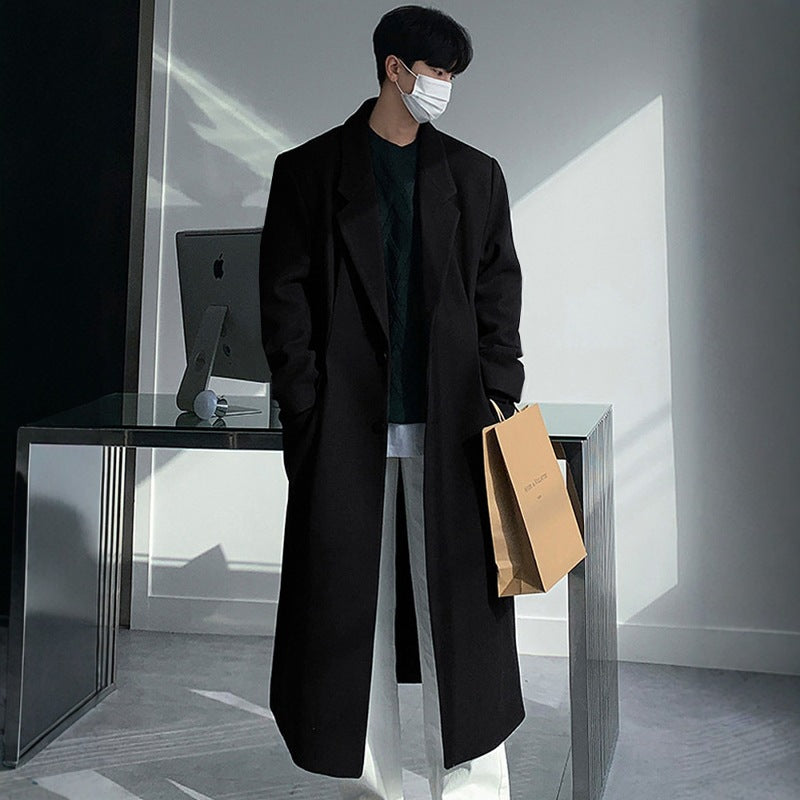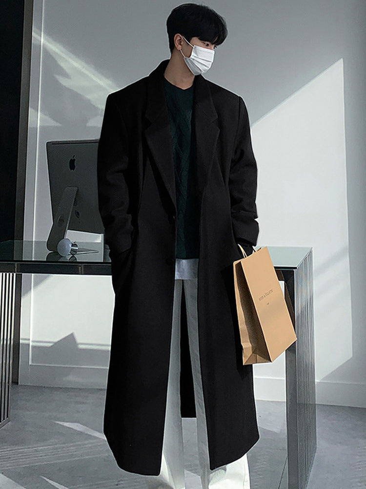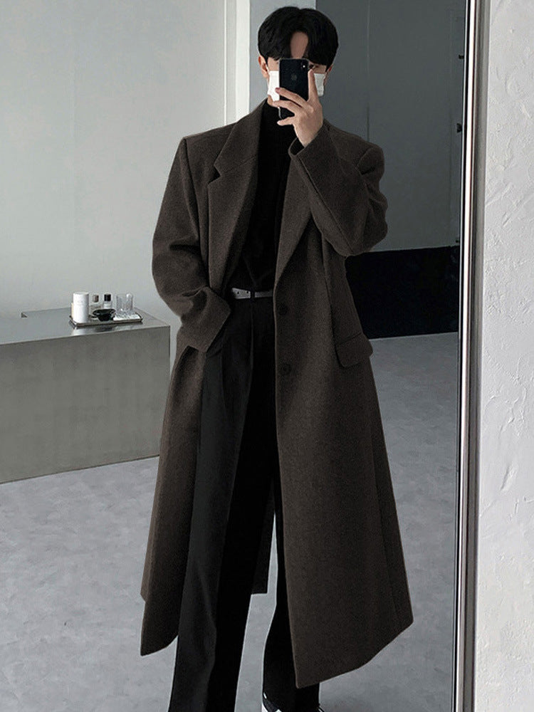 Men’s Woolen Knee-Length Coat Autumn Winter British Korean Style