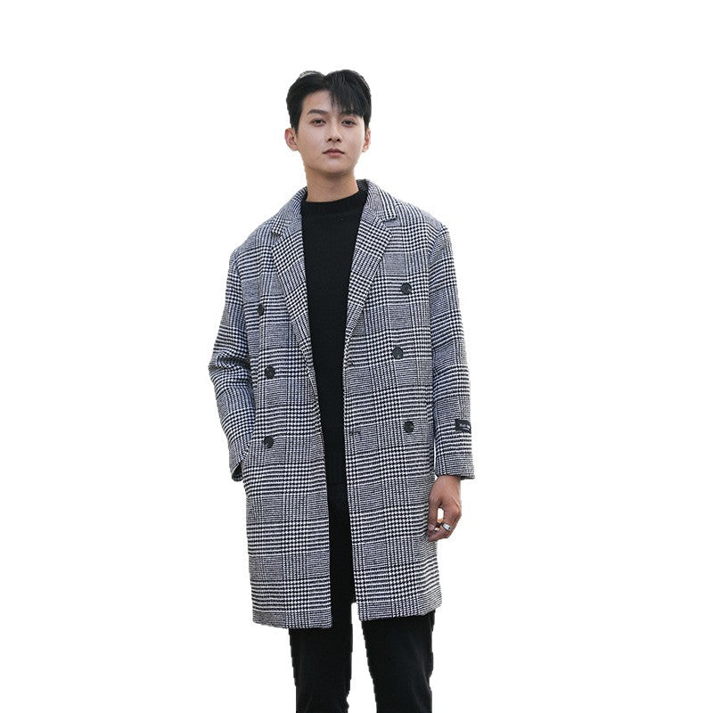 Step out in style with our men’s mid-length woolen trench coat, designed for 2025 autumn and winter. Featuring a loose plaid design, this coat blends Korean fashion trends with classic British elegance, keeping you cozy and fashionable during cooler seasons.