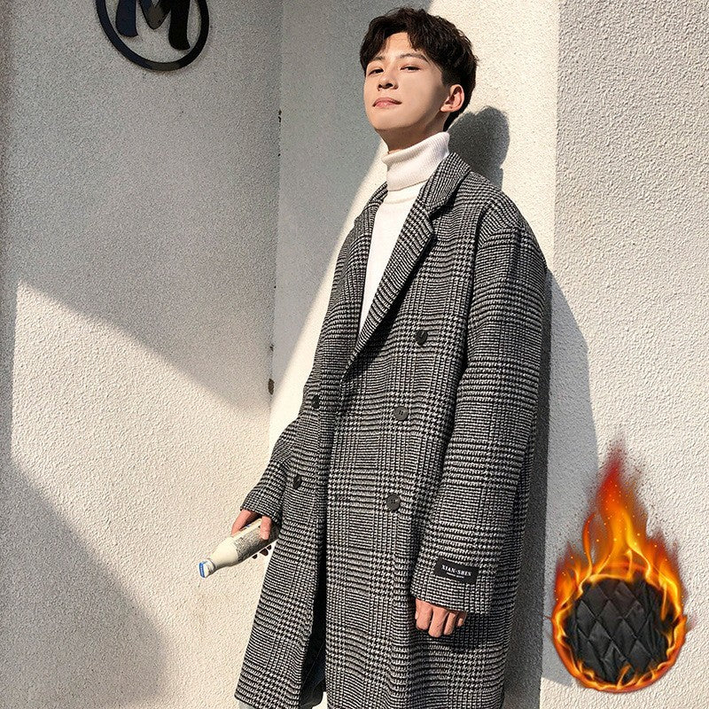 Step into 2025 with confidence and flair — this men’s loose plaid woolen trench coat combines warmth, comfort, and modern high-end fashion.
