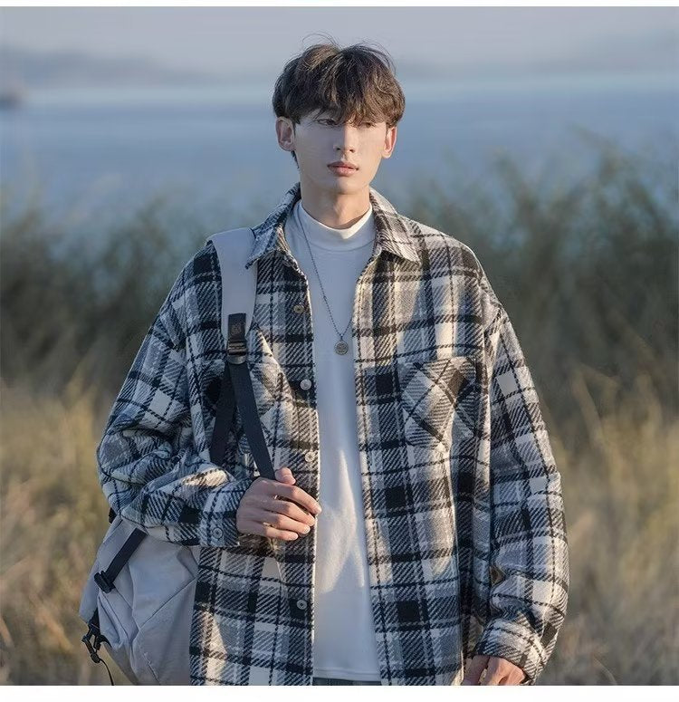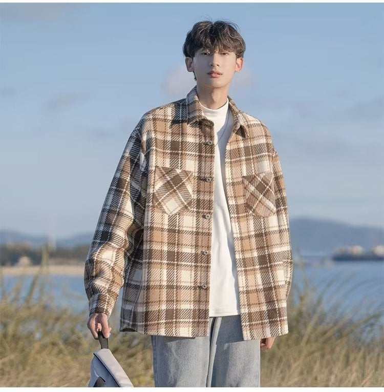 Upgrade your wardrobe with this Japanese-style woolen plaid men’s overshirt jacket—a comfortable, stylish, and versatile essential for autumn and winter fashion! 🌟