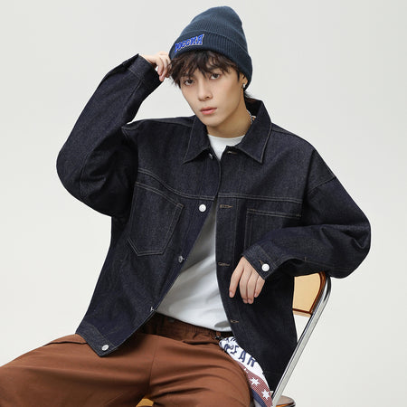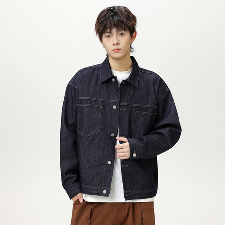 Men’s Loose Fit Denim Jacket with Contrast Stitching