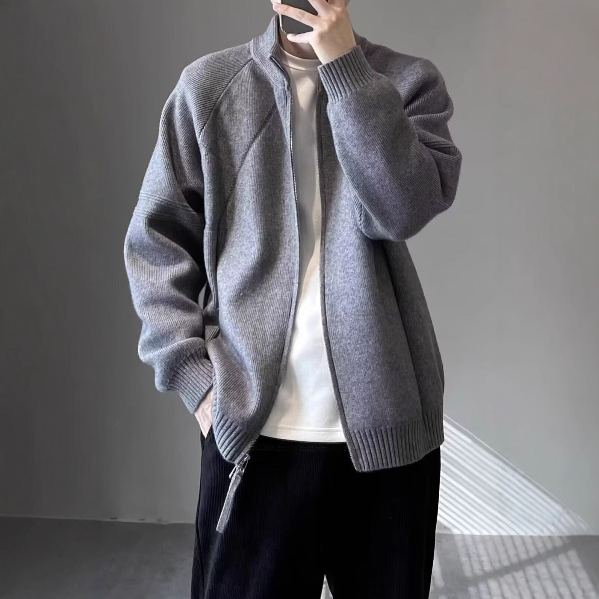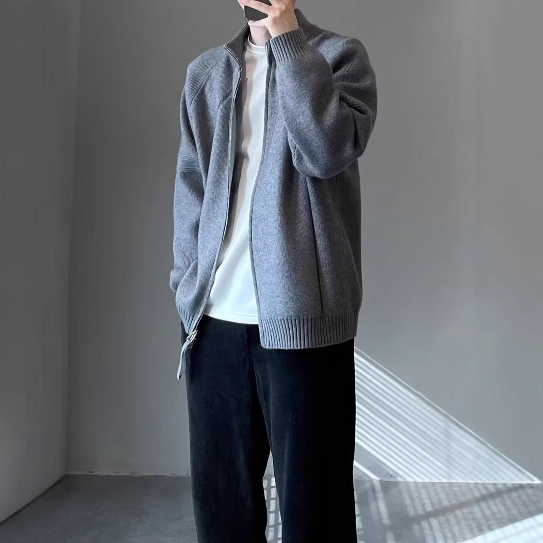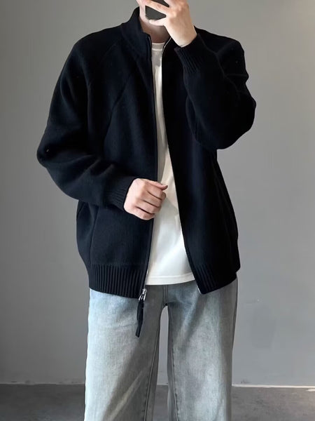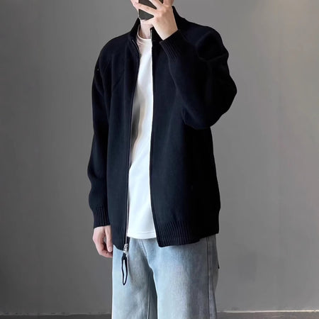 Men's Black Knit Cardigan – Autumn Winter Korean Zipper Sweater