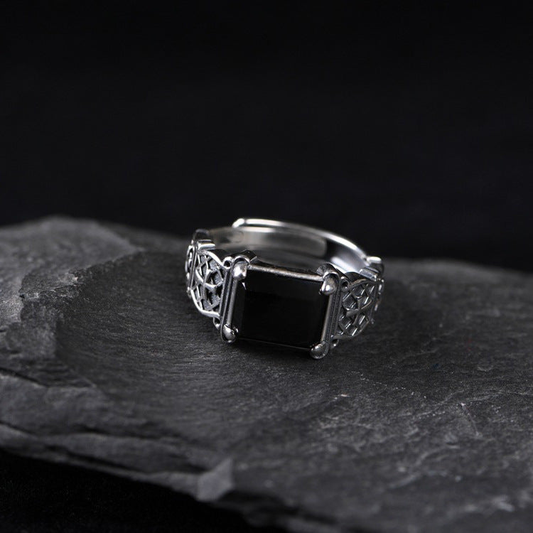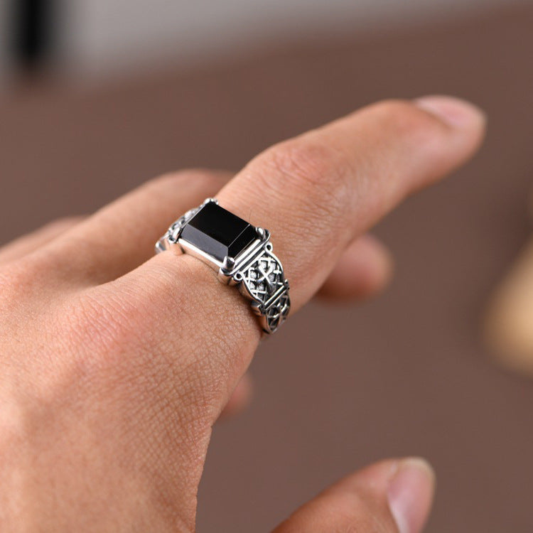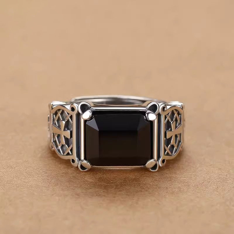 Men's Black Stone Cross Ring – Trendy Hip-Hop Style