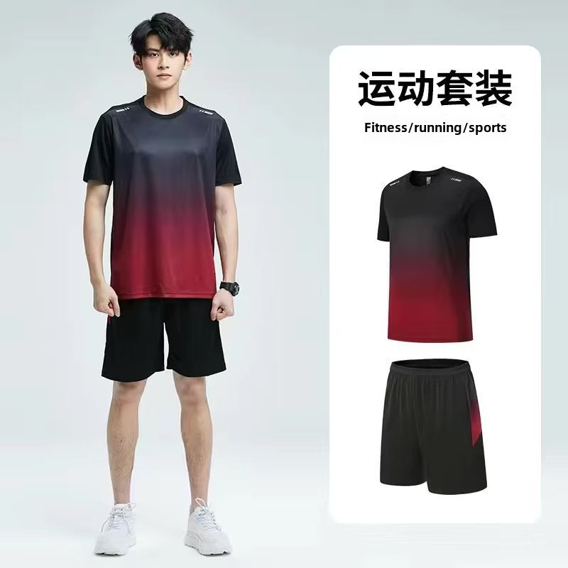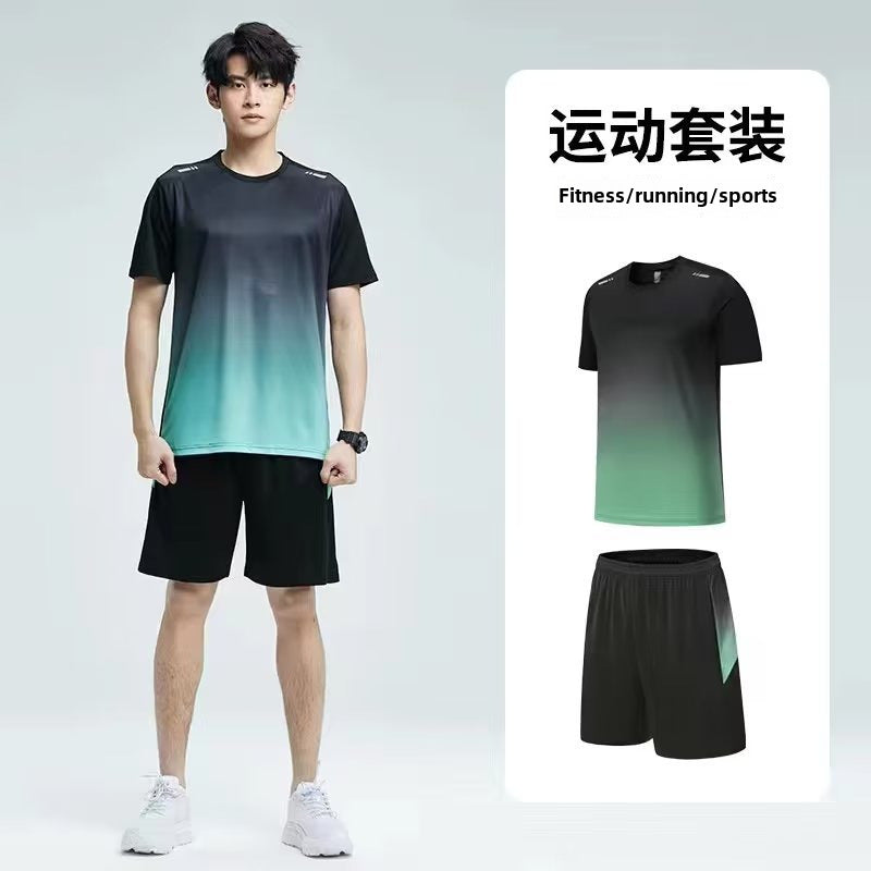 Stay cool and stylish with this ice silk two-piece sports set ❄️👕👟. The gradient tie-dye design adds a trendy touch to your fitness and casual wear.