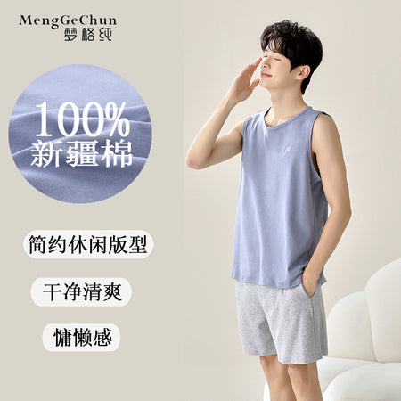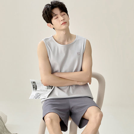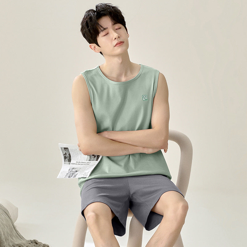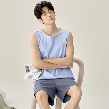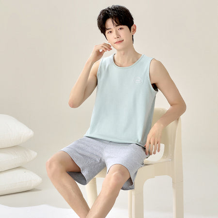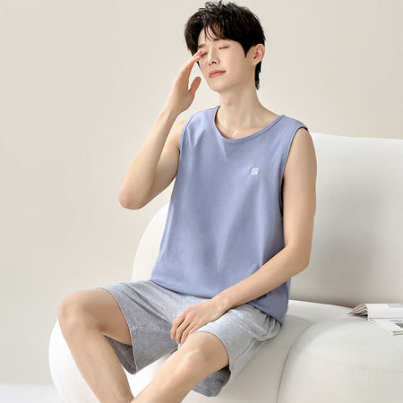 Men's Cotton Summer Pajama Set – Vest & Shorts Suit