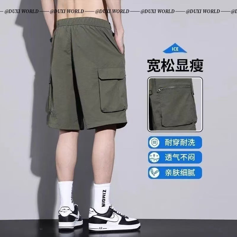 Men's Ice Silk Cargo Shorts – Japanese Style Summer Wear