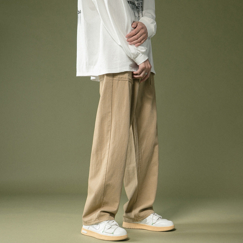 Men's Khaki Cotton Loose Fit Pants β HK Style Casual