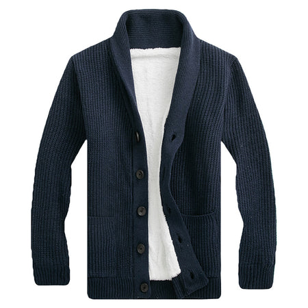 Men's Lapel Plus-Velvet Cardigan β Autumn Winter Knit Sweater