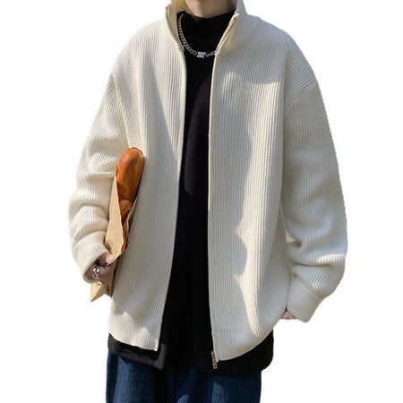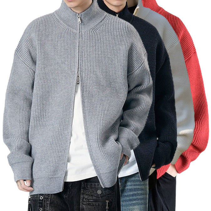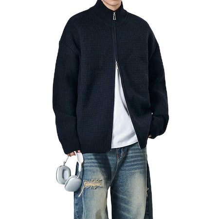 Men's Large-Size Zipper Cardigan β Solid Knit Sweater Jacket