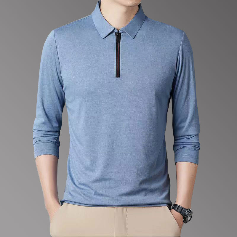 For smart comfort that lasts all day, try our Stretch Long Sleeve Polo Shirt for Men π§©. Featuring a sleek zipper and a breathable, non-ironing fabric, this shirt is built for easy-going elegance.